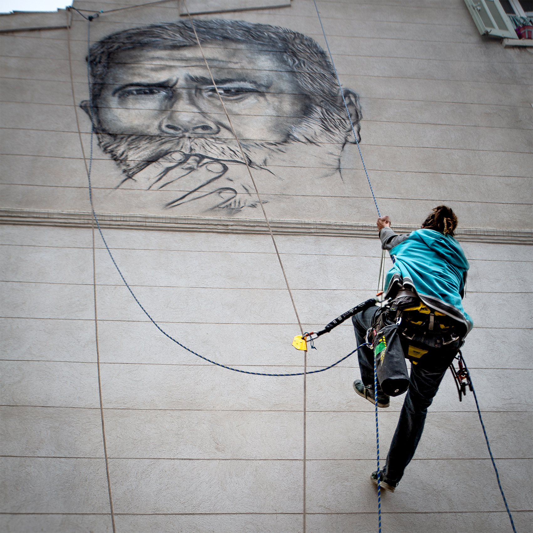 Place des Pistoles, quartier du Panier à Marseille, Fresque réalisée en Cordes avec une équipe de professionnels certifiés, pour 13 Habitat – Octobre 2024